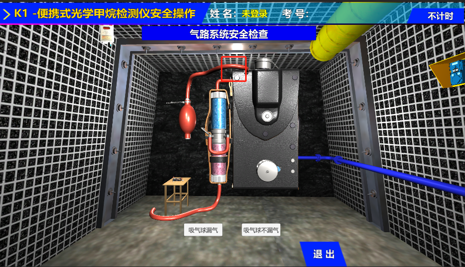 本套裝置由煤礦瓦斯檢查作業(yè)實操設備和智能模擬設備結合,可讓學員進行便攜式光學甲烷檢測儀安全操作(K1)和甲烷、二氧化碳、一氧化碳濃度檢測安全操作(K2),既能實現以上科目的實際操作,又可通過設備上安裝的傳感器同步采集學員操作數據,同時由系統(tǒng)生成模擬氣體,讓學員使用真是光學甲烷檢測儀進行測量,由系統(tǒng)判斷對錯,并將評分最終成績上傳管理服務器,實現虛擬與實操相結合。