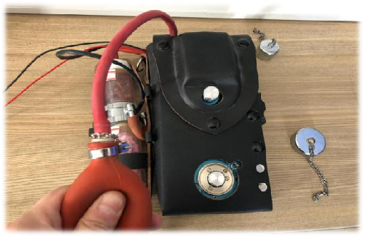 本套裝置由煤礦瓦斯檢查作業(yè)實操設備和智能模擬設備結合,可讓學員進行便攜式光學甲烷檢測儀安全操作(K1)和甲烷、二氧化碳、一氧化碳濃度檢測安全操作(K2),既能實現以上科目的實際操作,又可通過設備上安裝的傳感器同步采集學員操作數據,同時由系統(tǒng)生成模擬氣體,讓學員使用真是光學甲烷檢測儀進行測量,由系統(tǒng)判斷對錯,并將評分最終成績上傳管理服務器,實現虛擬與實操相結合。