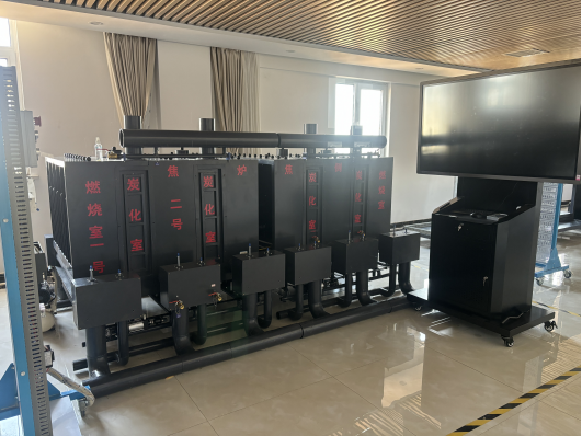 焦?fàn)t調(diào)溫工實(shí)操仿真裝置:按照焦化企業(yè)主體焦?fàn)t的配置而設(shè)計(jì)制作,包含1#2#兩個(gè)爐體1#2#焦?fàn)t爐體,每個(gè)爐體按照含2個(gè)炭化室,3個(gè)燃燒室的配置。每個(gè)炭化室配備1根上升管。整體設(shè)備包含,4個(gè)炭化室,6個(gè)燃燒室。